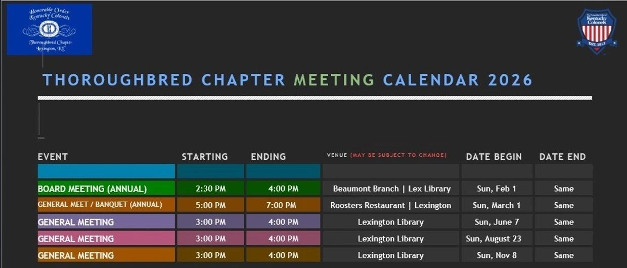 Our annual general meeting & banquet gathering will gather at the Roosters Restaurant (event room), 2640 Richmond Road, Lexington, KY RSVP L...